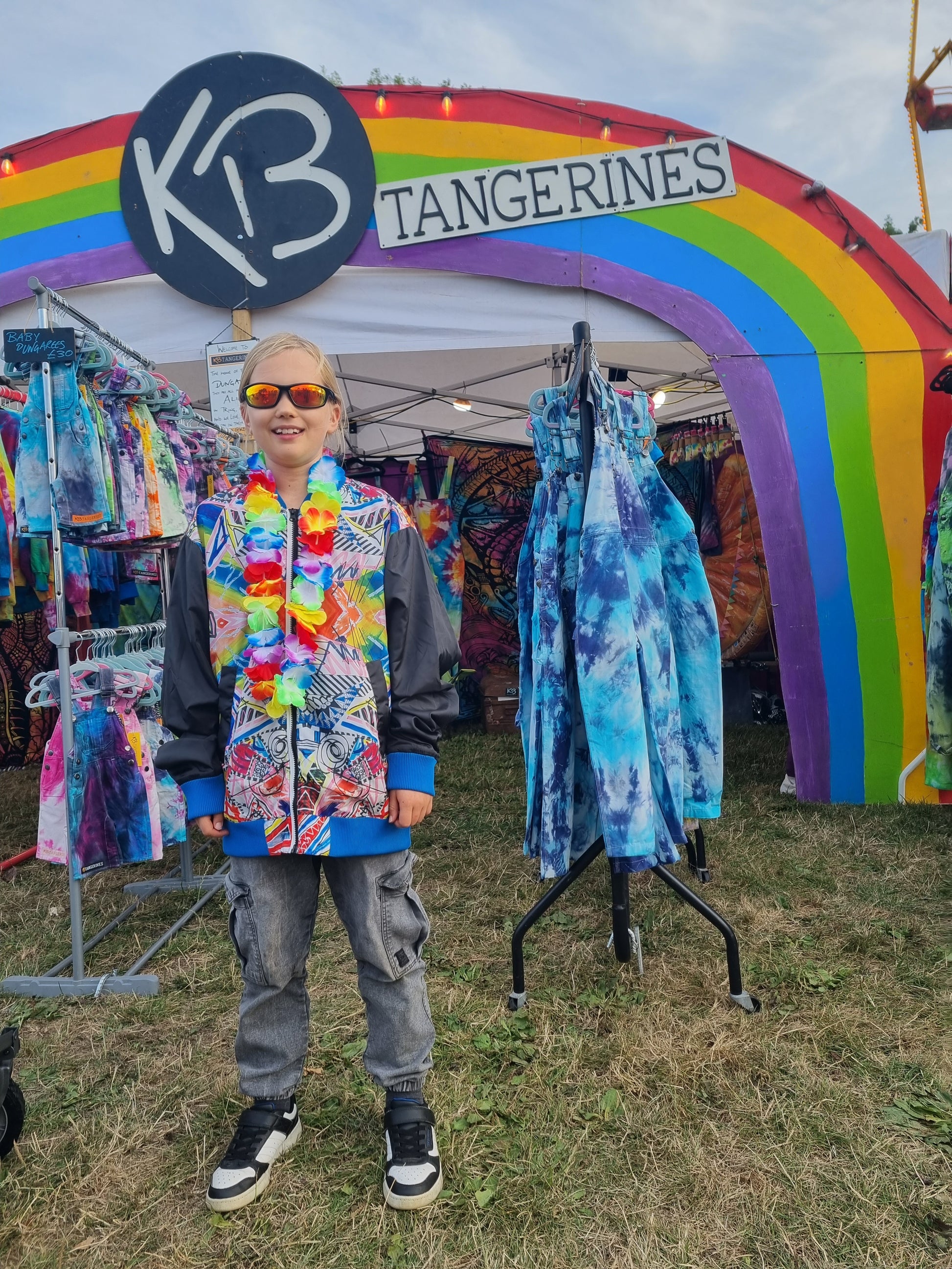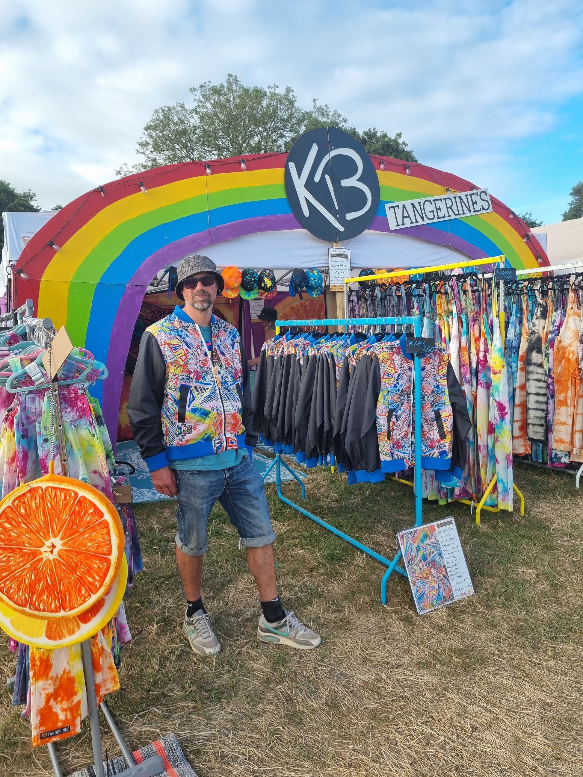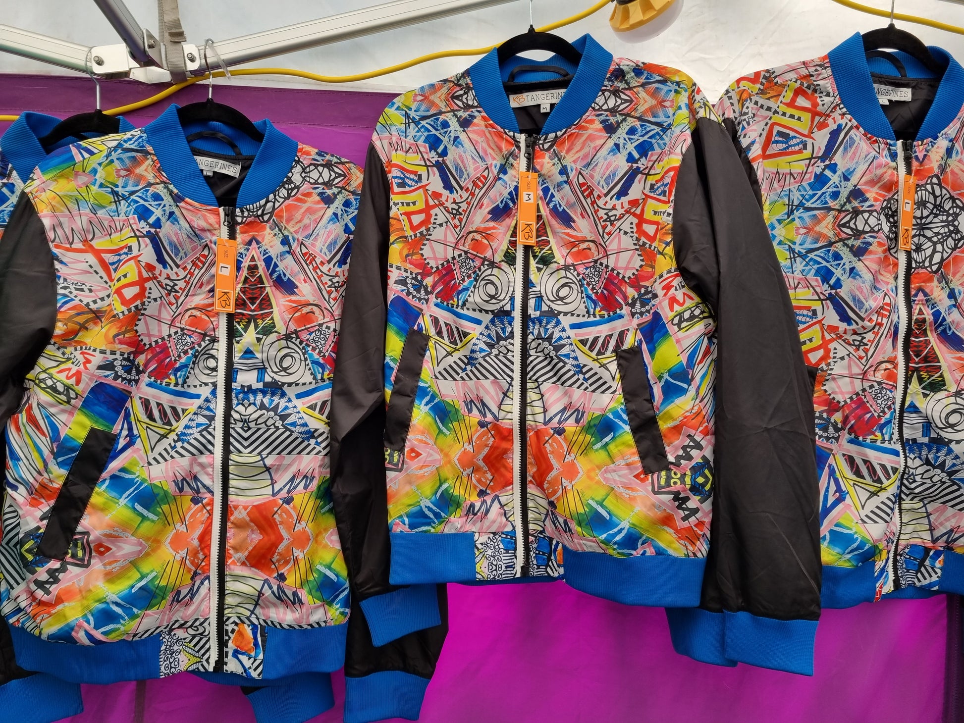 Launched last summer, this jacket features an allover print of a crazy mixed media painting by KB Tangerines founder, Alice. As a result it is completely uinique, and each one is different to the next depending on where the fabric was on the roll.